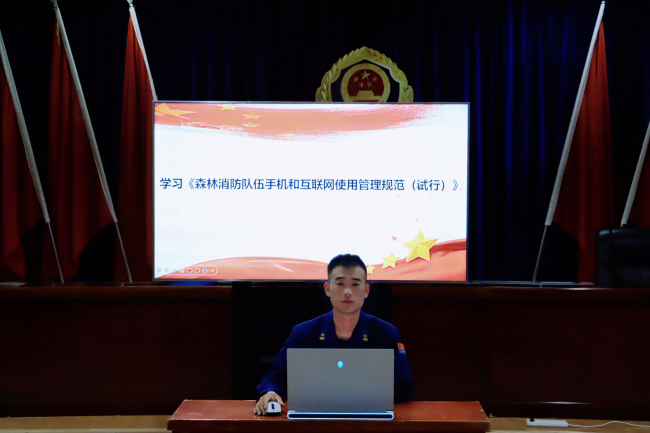 大队严格落实《森林消防队伍手机和互联网使用管理规范(试行)》要求,积极开展教育引导,定期组织新消防员学习手机网络使用管理规范,观看网络安全警示教育片、邀请公安干警进行电信网络知识宣讲,结合周三政治教育日开展专题教育,筑牢新消防员思想防线。