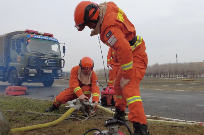 “三、二、一,开始!”随着一声令下,训练正式拉开帷幕,指战员们如离弦之箭一般冲出,肩上近二十公斤的装备拖不住他们前进的步伐,流淌着汗水的脸上全是青春的张扬。“架泵、出水、连接管带、打靶”一气呵成,“拆管带、排水、撤收、装框”有条不紊,轰隆隆的水泵声、沉重的脚步声、冲刺的呐喊声合成了一阵激烈昂扬的曲调。