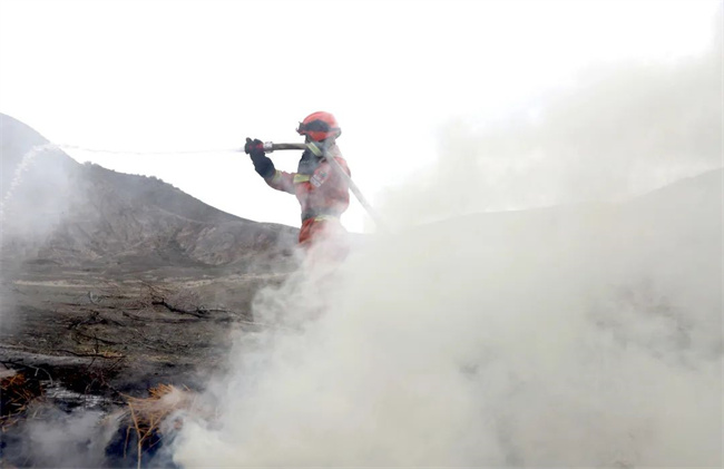 演练中,通过启动预案,调集队伍和调运物资,各单位协调联动,指挥有力有效,协同配合到位,实现了“练指挥、练协同、练战法、练队伍”的既定目标,进一步完善森林火灾应急救援机制和应急预案的可行性、紧密性和可靠性,积累应对森林火险突发事件的处置方法和实战经验。各个应急分队力量主要以森林消防队伍为主,主要负责攻险段、打火头,消防救援人员分工明确、密切配合,按照“接近火场、突破火线、扑灭明火、清理余火”的顺序对森林火灾进行了有效扑救。行动中,面对火场风力风向不定,火线强弱不同特点,指挥员灵活采取“强攻推进、递进超越,水泵攻坚”等战法,灭火人员协同配合,展现出了过硬的技战术素养,演练取得了圆满成功,使火场达到了“三无”标准。