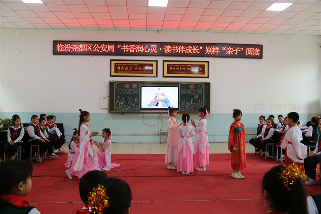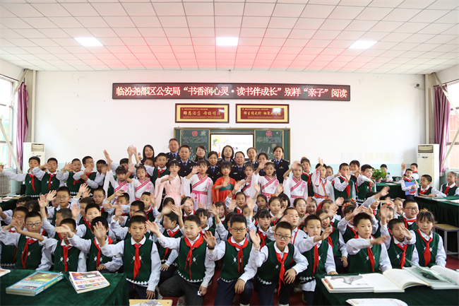 本网讯:(田哲斌)传承经典,浸润心灵。4月12日,在第28个“世界读书日”来临之际,尧都区公安局工会主席曹国萍带领民警来到临汾惠祥学校,参加学校组织开展的“书香润心灵·读书伴成长”别样“亲子”阅读活动。