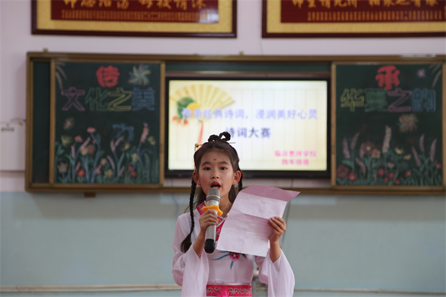 曹国萍在讲话中希望师生们认真学习贯彻习近平总书记重要指示精神,积极参与到阅读中来 养成爱读书读好书善读书的习惯,共同分享诗词之美,感受诗词之趣,从古人智慧的情怀中汲取营养、涵养心灵、传承诗词文明,并从读书活动中感受真善美,养成好思想、好品行、好习惯,在书香中成长成才。