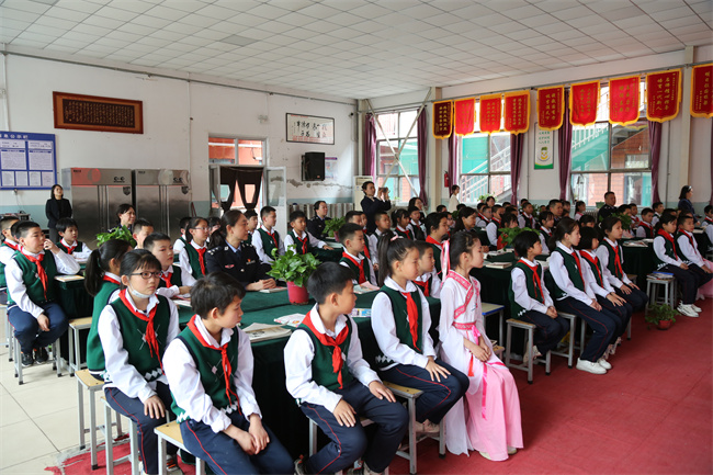 活动中,公安民警和孩子们围坐在一起,兴致勃勃地观看了学生们组织的诗词闯关、穿越剧、读书分享会等环节表演,陪伴孩子们一起倘佯在古诗词的海洋,用实际行动传承中华优秀文化、感受诗韵之美。