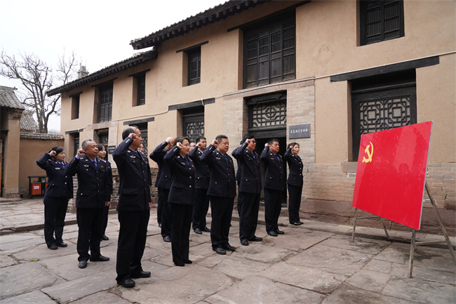 在中共太岳区党委桑曲旧址,党员们面向鲜红的党旗庄严宣誓,重温入党誓词。大家怀着崇敬的心情,依次参观了太岳军区司令部桑曲村旧址,太岳区行署旧址、赵城金藏转运地等地,沿着刘少奇等老一辈革命家的足迹,倾听讲解员介绍太岳区党委带领广大人民群众英勇抗日故事,认真观看历史遗存及文史资料等,追溯革命记忆,重温那段波澜壮阔的斗争历程。