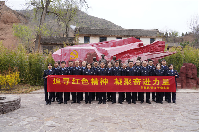 本网讯:(田哲斌)为进一步深化学习贯彻党的二十大精神,教育广大党员赓续红色血脉,传承红色基因。4月13日上午,尧都区公安局组织民辅警赴安泽县太岳红色革命教育基地,开展“追寻红色精神,凝聚奋进力量”主题教育活动。副局长王文东、局党委委员、政工监督室主任张秀峰和尧都区看守所、局党办党务工作者、优秀党员等20余人参加。