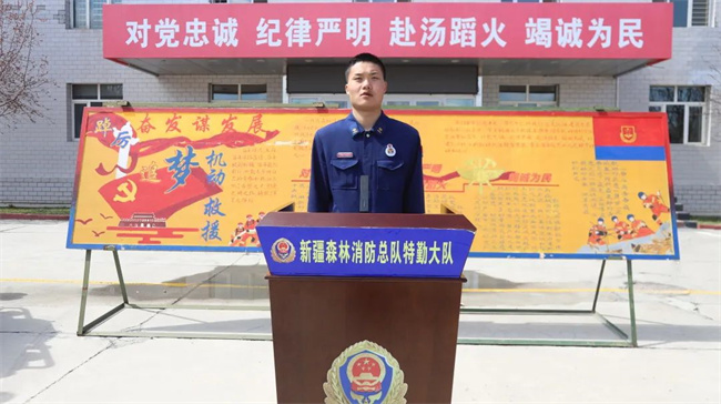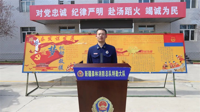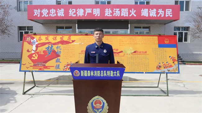 “作为驻地在首府森林消防指战员,更要严格要求自我,‘三人行必有我师焉’,多向经验丰富的骨干学习请教,刻苦训练,努力提升救援技能,遵守一日生活制度,维护消防员良好形象,俯下身子、耐住性子,干好自己本职工作,用实际行动诠释听党话,跟党走,把对党忠诚化作践行使命的自觉行动”。四级消防士胡石塔尔说到。