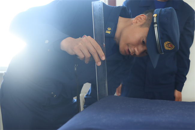 “出门看队列,进门看内务”。把被子修成“豆腐块”,方寸之间,丈量的是规则尺度,严谨作风;平竖之上,展现的是细致入微,务实力行,有助于去浮躁、除娇气,砥砺心性,磨砺意志,锤炼品质。