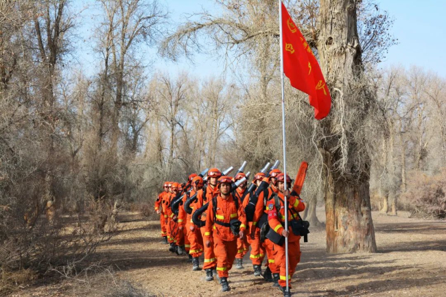 队伍始终坚持知行合一、学以致用,将“党纪条规学习月”活动效果转化践行训词精神的不竭动力,立足当前驻地进入春防紧要期,派出队伍靠前驻防,广泛宣传森林草原防灭火常识,分批次开展护林员培训,提升半专业化队伍扑救森林火灾能力水平。驻防队伍和阿克苏地区7县2市组成的应急、消防、公安、医疗、航空、通信保障等200余人参加森林草原防灭火实战应急演练,通过实兵、实装、实火、实战的方式,练协同、练指挥、练实操,着力构建起科学高效完备的联合指挥、力量协同、资源共享和综合保障体系形成,不断提高了救援力量之间的协同配合能力。期间所有参演人员士气高昂,战法灵活,展现了队伍过硬的作风和良好的形象,得到了地方各部门领导高度评价和友邻队伍的一致好评。