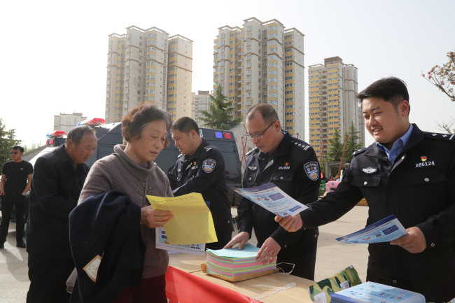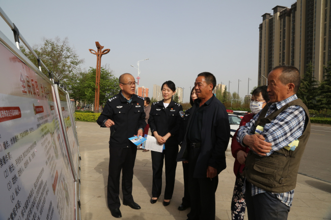 4月14日,国保大队、反恐办公室、防暴巡警大队在尧都区新时代文明实践中心广场,开展宣传国家安全知识和反恐怖主义知识,区委宣传部、市局国保支队参加宣传活动。