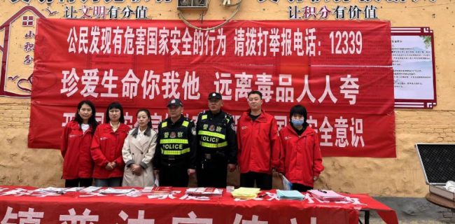 4月14日、15日,尧都区社区戒毒社区康复服务中心、吴村镇、南街办事处和辖区派出所联合行动,在街道、广场设置宣传点,开展开展国家安全和禁毒宣传活动。