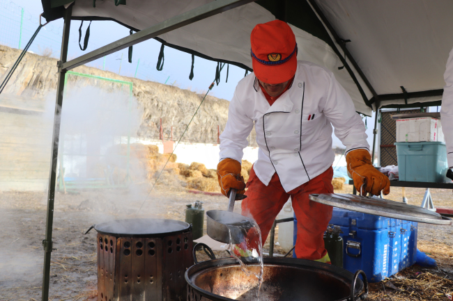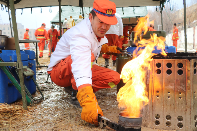 餐桌连着战场,保障关乎胜负。大队围绕训练需求科学配餐,坚持每周制订食谱,科学合理调剂伙食,确保营养摄入均衡,让救援人员吃出强健体格,以旺盛精力练兵备战。跟平时不同,队伍执行任务期间需要更加快速高效的保障,大队大队常态化开展野炊训练,锤炼炊事人员野外炊事技能。从炊具展开到打气点火,从切菜配料到挥铲烹饪,每名炊事员分工明确,动作干净利落,一道道佳肴相继出锅。炊事班长王得亮说道:“队伍在外执行任务、野外驻训期间,人员体能体力消耗大,想要前方有力量,伙食保障就要高于平时,严于平时。”