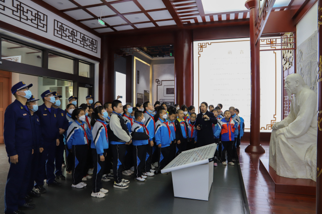 展厅内,支队张涛政委、郭合清主任和参加活动的党员干部一道,在讲解员的引导下,深入了解林则徐从政40多年,为官清廉正直的生平事迹。纪念馆中的一帧帧图画、一件件实物、一条条格言警句,让大家仿佛穿越时空与伟人对话,重温那跌宕起伏、波澜壮阔的历。