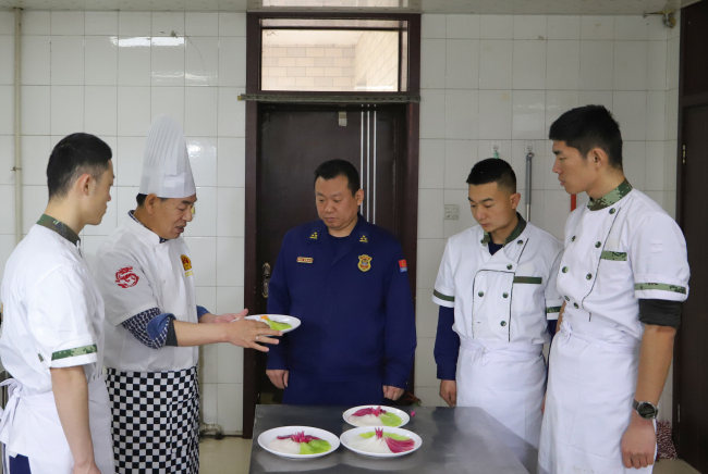 此次考核旨在检验近期以来培训成果,监考老师严格按照院校考核标准进行考核,本着公平公正的原则,重点对炊事员掌握烹、炸、煎、炒、烩、炖的基本技法、各种摆盘技巧进行考评,进一步提高了支队炊事人员烹饪技能水平,为保障综合性应急救援任务圆满完成打下坚实基础。