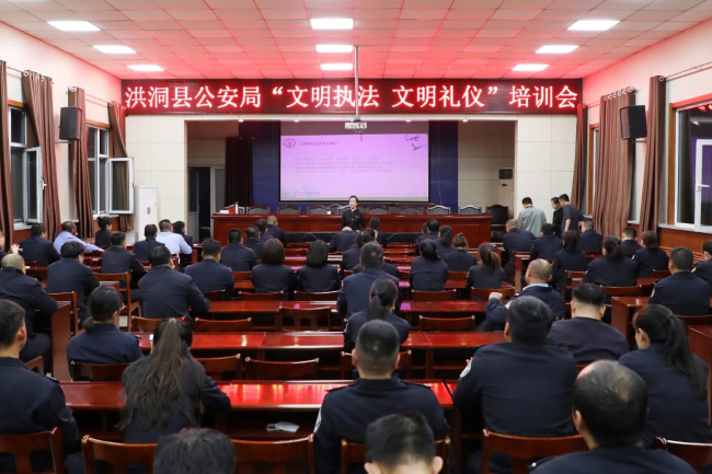 为提升洪洞公安队伍整体素质,树立良好形象,为洪洞创建文明城市添砖加瓦,4月18日晚,洪洞县公安局开展“文明执法 文明礼仪”培训会,特邀请了东方礼仪研究院导师苏静现场授课,全局民、辅警参加培训。