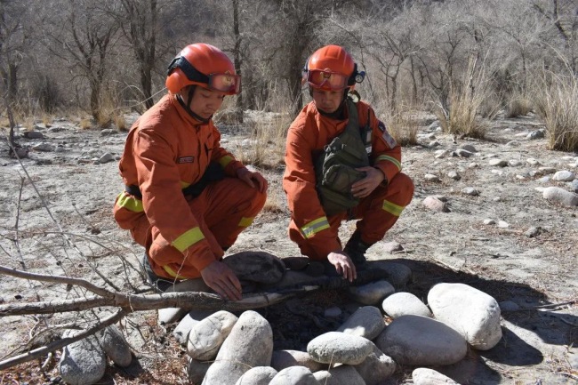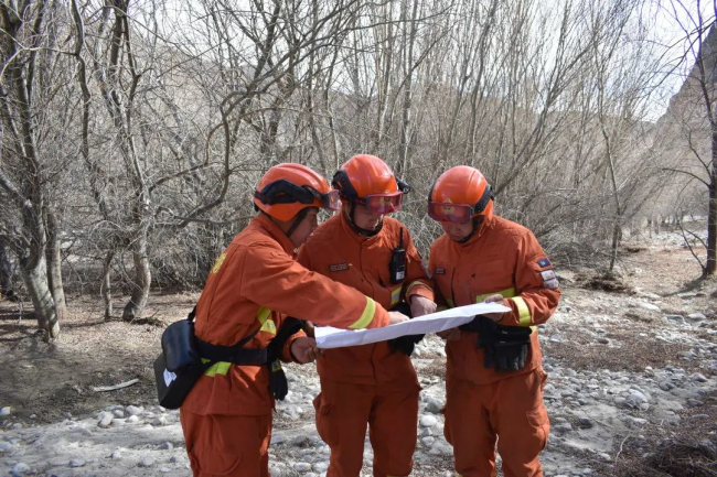 从实地踏查情况看,巴伦台沟植被茂密,地形复杂,主要林内可燃物载量较多,地表可燃物覆盖在林下与绿色植被交错叠加,主要以落叶、枯枝为主,可燃物较为干燥,易燃。“我们现在所处的位置是和静县巴伦台沟,巴伦台沟内野生动植物资源丰富,有云杉、胡杨、河柳、锦鸡儿、麻黄、柽柳等野生植物资源千余种,林下可燃物大多为阔叶和枯树枝,厚度3公分……”在巴伦台沟,大队指战员深入林区现地查看地形地貌、记录林区植被类型、林下可燃物载量、标记附近可用水源和交通道路,对重点火险区域进行详细标注,确保采集资料的准确性、系统性和全面性。