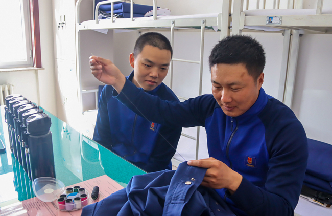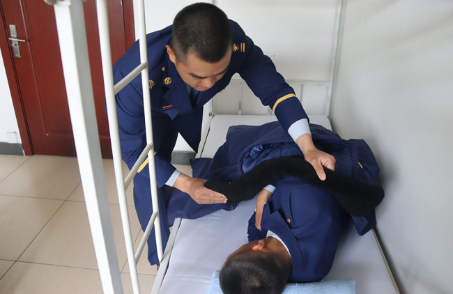 “情绪不太高,是不是想家了?”“生活上有没有不习惯的地方?”班长总是留意关心我们的点点滴滴,晚上我蹬被子他查铺时会帮我盖好被子、受伤了他会给我贴创口贴、被子没叠好他会教我叠被子,被领导批评了他会安慰我开导我,衣服坏了他会帮我缝衣服班长细致入微的关怀使我在队伍辛苦的训练中感受到了家的温暖。