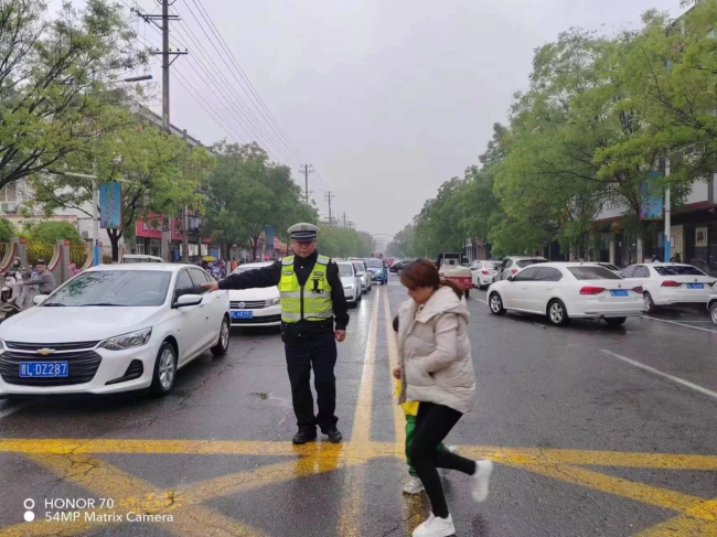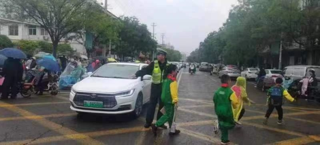 交警大队“护学岗”民辅警风雨无阻,实行“高峰勤务”和“护学岗”常态化机制,在学生上下学期间穿棱于人群和车流中间,疏导交通,维持秩序,及时清理学校周边违停车辆,对家长接送车辆、社会车辆进行有序疏导,护送学生安全过马路,并及时提醒驾驶人雨天注意交通安全、减速慢行,提醒每一位接送学生的家长既停既走,车辆靠边有序停放,为孩子们铸起一道“安全防线”,增强在校师生安全感,切实为广大师生上下学撑起“安全伞”。