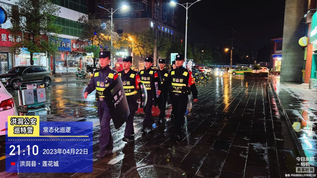 巡特警大队在城区主干道、易积水点段以及人员密集的商超等重点部位部署警力,开展路面交通引导、执勤保通、巡逻排查等工作,确保及时发现险情和快速处置。
