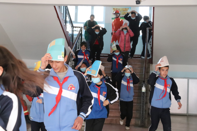 随后,分队组织全体师生开展防震应急避险和疏散逃生演练,进一步加强学校安全工作,提高师生的防震减灾意识和自救互救能力。演练过程中,在分队指战员和校领导的指挥下,同学们依据逃生路线从各楼层有序进行紧急疏散,快速到达安全集合点,演练全过程紧张有序,没有发生安全事故,达到了预期效果。地震疏散演练结束后,组织师生参观了地震救援装备,指战员详细讲解了装备性能、作业条件以及操作方法,为全体师生上了一节生动的地震救援科普教育课。