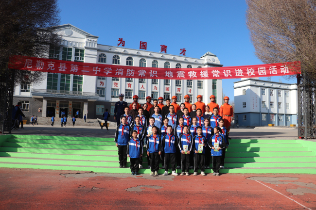 本网讯:(刘杰 孟庆闯)安全知识进校园,减灾意识入人心。为进一步普及消防安全知识,增强青少年消防应急观念。4月21日,伊犁州森林消防支队尼勒克靠前驻防分队走进尼勒克县第二中学,开展地震救援常识进校园活动,增强广大师生防灾减灾意识和逃生自救能力,共同构筑安全和谐校园。