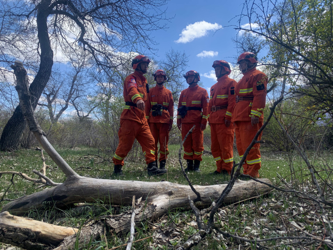 踏查过程中,分队利用无人机和相机进行全景尺度画面拍摄和近景尺度画面拍摄,对林区内林下可燃物概览、防火基础设施、施工场地、“树线矛盾”和林下可燃物近览进行数据收集。经勘查,其中,景区防火基础设施情况:景区外围设有森林消防站、防火装备齐全,景区内设有2个供水站;民情社情情况:景区周边有少量民房,有常住居民活动频繁;存在的火险隐患:枯枝倒木较多,腐殖层较厚区域约10厘米,有明显聚餐痕迹存在野外用火风险。而后与景区相关负责人提供的信息进行对比,形成精准的踏查分析报告,对高火险区域进行了标绘记录,重点标记出林地植被分布特征、林下可燃物等关键信息,直观感知林情地貌、现场分析火灾特点规律及预防重点、险点,研究防范对策措施、力量部署方式、具体战术战法,确保采集资料的准确性、系统性和全面性。