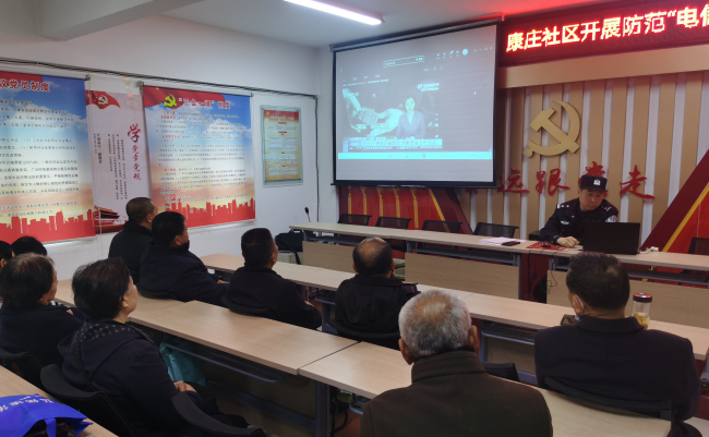 针对当前电信诈骗案件高发态势,派出所组织社区民警深入社区,通过发放宣传材料、张贴宣传单,面对面讲解防范电信诈骗知识,宣讲当前电信诈骗案件的特点、种类及典型案例等内容,并在微信群、网格群里定期发送防骗信息,全方位营造全民反诈的浓厚氛围,捂紧辖区群众的“钱袋子”。4月23日,派出所民警深入到康庄社区开展防范诈骗专题讲座,通过观看视频、法律宣讲、案例剖析等形式,揭露不法分子实施电信诈骗的手法,提高辖区群众尤其是老年人群体识骗防骗能力。