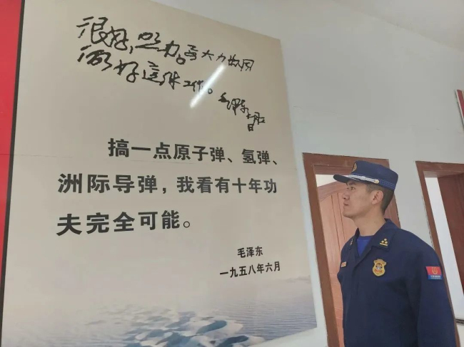 走进军博园,庄严肃穆的气息扑面而来,在六尊傲然屹立的“钢铁巨人”围塑成的马兰花雕像下,“惊天动地”的马兰魂如千军万马在戈壁深处虎啸龙吟。4名纪检干部手持党旗,在重温忠诚誓言、致敬革命先烈中,再一次被马兰精神的宏伟意蕴深深触动。在讲解员的引领下,大家依次参观了展览馆、将军楼、防空洞等处,聆听了革命先烈的英雄事迹,近距离感受了解放军和科技工作者当年用过的一件件物品、工具,设计的一部部仪器、设备···沿着革命先辈足迹,大家对“热爱祖国、无私奉献、自力更生、艰苦奋斗、大力协同、勇于攀登”的“两弹一星”精神和“艰苦奋斗、干惊天动地事,无私奉献、做隐姓埋名人”的马兰精神,有了更加直观的感受、深刻的领悟。