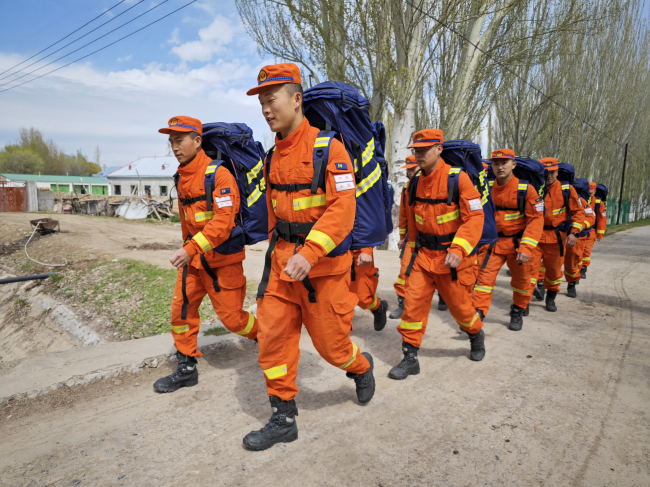 本网讯:(刘杰 孟庆闯)红旗猎猎迎风展,呼号声声响震天,驻防拉练显峥嵘,淬火成钢铸忠诚。4月底的尼勒克阳光明媚、春暖花开,随着现场指挥员的一声令下,伊犁州森林消防支队尼勒克靠前驻防分队全体队员精神抖擞、昂首挺胸,顶着席席热浪、迈着矫健的步伐,在尼勒克南部山区的小路上编织出一条背着蓝色负重背囊的橘色长龙,奏响了一曲拼搏奋进的嘹亮凯歌。