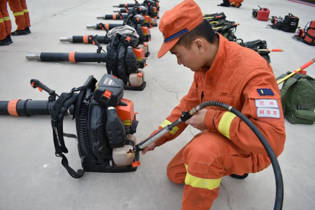 扎实的理论基础是有效提升森林草原火灾应对处置能力的基础,教练员重点围绕森林草原防灭火基础知识、森林火灾燃烧的特点、火灾扑救以及安全避险等专业知识对沙雅县应急分队、护林站及其他队伍成员进行授课,针对培训人员提出的问题,耐心答疑解惑,同时,大队为将教学成果长期留存,归纳整理出沙雅县防灭火建设理论方面6项需求、防灭火技能方面4项需求,针对整理出的需求,大队通过录制训练、装备维护等视频,整理出理论授课课件等方式,提供给沙雅县应急分队进行学习,并协调沙雅县应急分队队员进行集中学习。