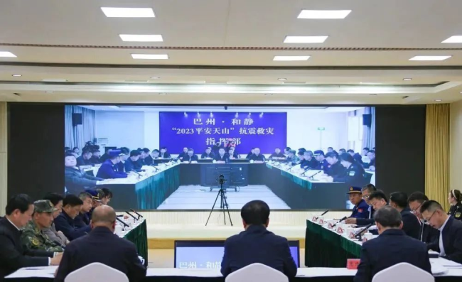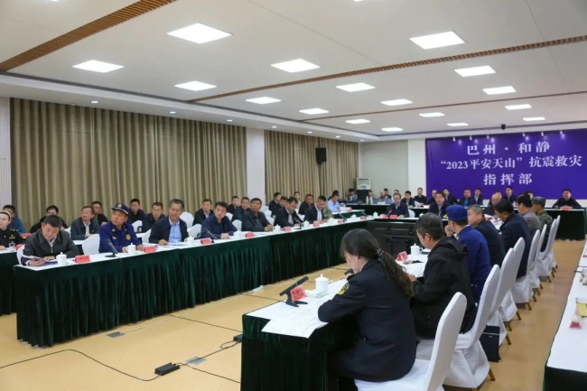 4月25日,巴州·和静“2023平安天山”抗震救灾综合实战演练在新疆维吾尔自治区巴音郭楞蒙古自治州和静县展开。