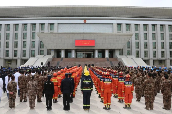 灾情就是命令,时间就是生命。地震后72小时被称为“黄金救援72小时”。为抢占救援先机,巴州森林消防支队采取首长机关带两个大队出动120人、30台车,携带各类救援装备器材600余件套,以摩托化机动方式向“震中”驰援。
