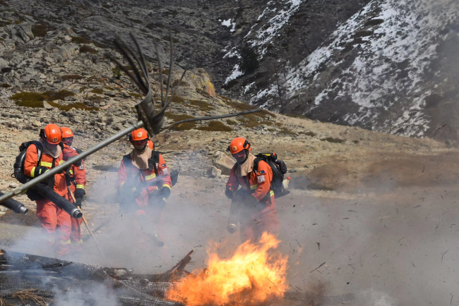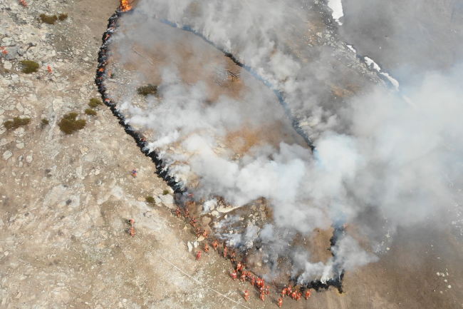 本网讯:(杭尹修 康冀)4月26日上午12时许,一股浓烟升起,1000米长的火线瞬间燃烧,犹如一条气势汹汹的巨龙,随着演练总指挥一声令下,富蕴县“守卫金山银山·2023”扑救重大森林火灾综合演练正式拉开帷幕。
