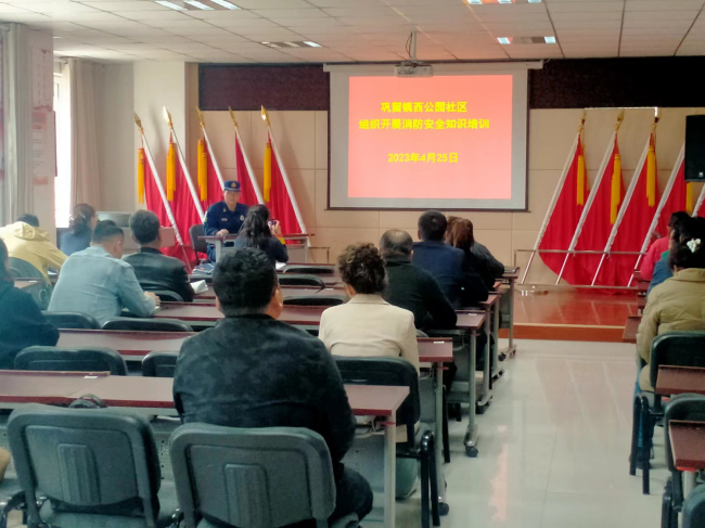 本网讯:(叶尔夏提)为进一步加强消防安全工作,增强干部及广大居民的安全意识,提高抵御火灾能力,切实保障生命财产安全,杜绝火灾事故的发生。2023年4月25日,西公园社区利用党日主题活动之际,邀请西公园社区大党委成员单位森林消防大队工作人员,组织开展消防安全知识的培训、普及消防安全知识,提高干部及辖区居民党员的自防自救互助能力。