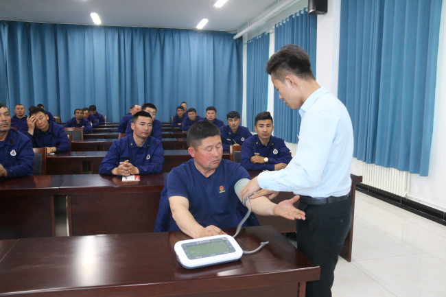 期间,廖老师以生动有趣、富有感染力的语言为指战员们讲解了健康的生活方式及如何科学养生、常见职业疾病及高发疾病的预防知识。同时,廖老师与现场的指战员们进行了互动问答,为现场的部分人员进行了测量高血压,并给出了具体的治疗和预防方案。倡导大家推行健康生活方式,定期检查身体,保持良好心态,合理饮食,培养健康生活习惯。