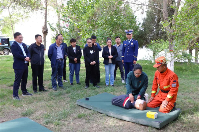 活动过程中,在讲解员的带领下,参加活动的党员共同参观了大队党史主题文化长廊,了解了大队改革转制以来党建工作、队伍建设、综合救援等方面的工作开展情况。期间,地区应急管理局航空护林站李宗民站长、大队姚方教导员围绕“牢记誓词训词,护卫绿水青山”这一主题组织理论学习,重点对党的二十大精神、习近平总书记为国家综合性消防救援队伍授旗并致训词精神和关于森林草原防灭火重要指示批示精神等进行传达学习。随后,地区应急管理局机关第一党支部的党员干部纷纷体验卫生与救护、装备操作使用等指战员日常训练科目,加深了应急管理局党员干部对森林消防队伍的了解。