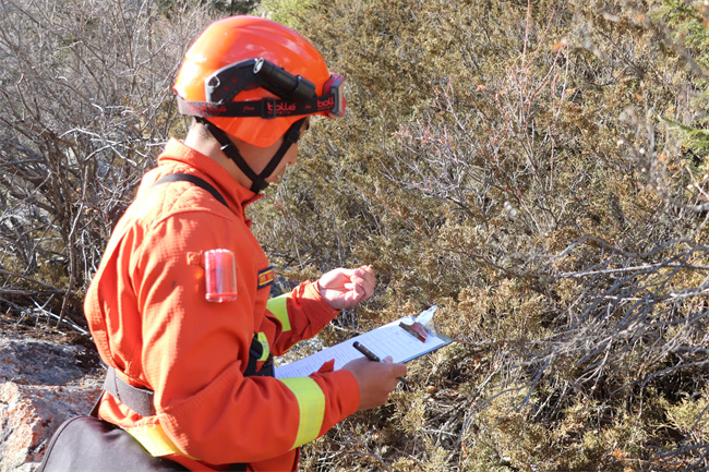 大队结合历年林火发生的特点和规律,根据当前天气、植被变化情况,本着“全覆盖,无盲区”的原则,将景区内重点火险区、重点林区按照由北至南、先重点后周边的顺序进行分区划片,采取实地踏查、空中观察、座谈了解等方式,对重点火险区、重点林区的可燃物载量、道路、植被、水源及林情社情等要素进行全面收集整理。