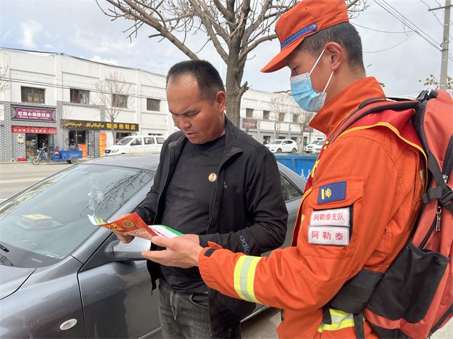 本网讯:(蔺文杰)“宁可千日无火,不可一日不防。”五一假期,外出游玩人员骤增。为持续抓好森林草原防灭火工作,五一期间,阿勒泰森林消防支队阿勒泰大队紧贴任务实际,着眼节假日期森林防火严峻形势,积极开展森林防火宣传活动,筑牢森林防火安全屏障。