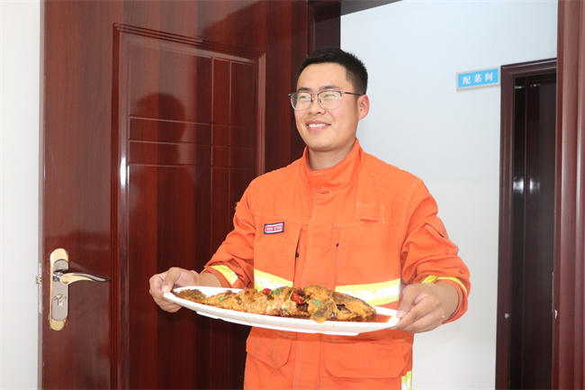 “烟熏火烤尝百味,蒸烤烹炸色味全,厨房就是我的‘战场’,保障队友吃的好、吃的饱,我就是他们的‘守胃人’。”炊事员苏广杰说到。
