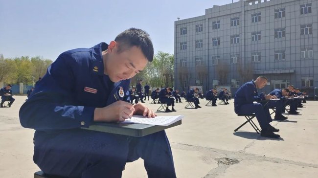 根据总队下发通知方案,此次考核分为三大类,分别对消防员共同理论、共同技能、体能课目进行考核,理论测试、灭火弹投掷、三倍力架设、负重5000米、单杠卷身上、双杠摆动臂屈伸等课目为普考,参考队员精神抖擞、斗志昂扬,在考核中努力突破身体极限,形成“比、学、赶、帮、超”的浓厚训练氛围。