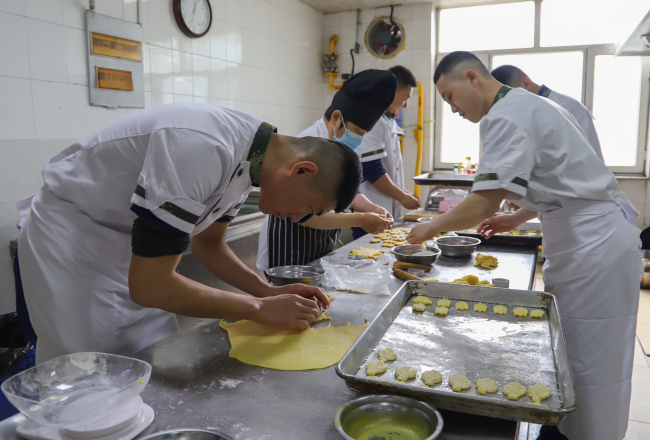 培训立足现代餐饮文化和指战员实际需求,以“满足大众口味,提升伙食花样,注重营养品质”为根本遵循,积极邀请驻地技工学院专业老师和地方大酒店厨师到队进行教学培训,从刀工、炒工、配菜、面食和糕点制作等基本功入手,培训既有理论讲授,又有实践操作;既有讨论交流,又有评比竞赛,切实达到让培训学员学有所获、学有所成,回到基层就能从事炊事岗位工作。