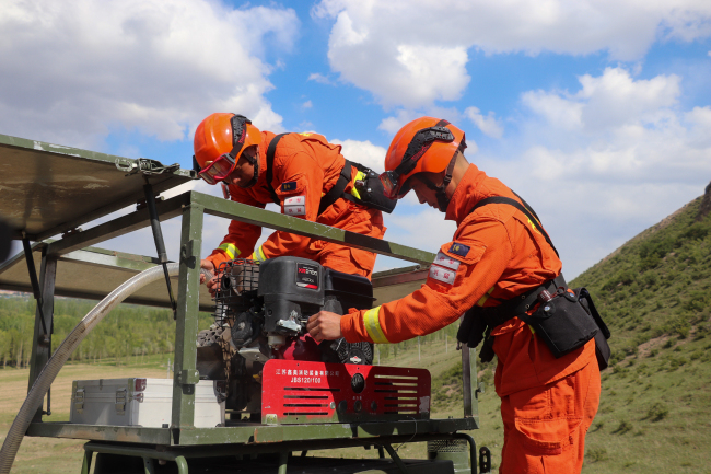 本网讯:(魏富满 巴合德尔)为进一步提升运用重型车载水泵在复杂地域环境下灭火作战能力。5月8日,伊犁森林消防支队尼勒克靠前驻防分队严密组织车载水泵训练,意在不断提高人装结合灭火技能。