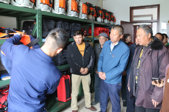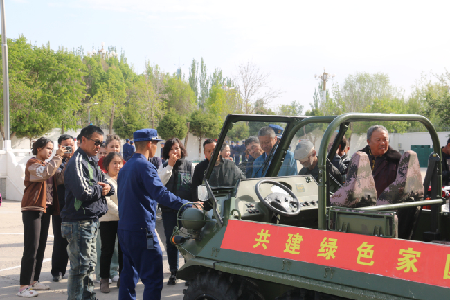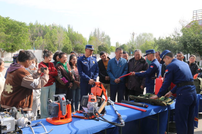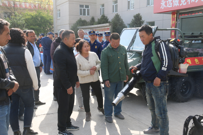 同时,讲解人员协助参观人员拿起风力灭火机、水枪等装备,亲手体验操作过程,在零距离接触中了解掌握装备的操作原理,在手把手的互动体验中持续加深各族群众对森林消防事业的理解认同,筑牢森林防火的群众基础。“这次活动对大家的教育意义很大,不仅提高消防安全意识,增强了火灾防范的责任感,又使大家掌握必备的自救互救常识。”社区工作人员叶尔夏提说道。