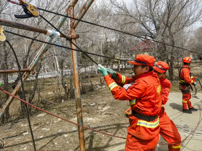 本网讯:(于宏鑫)为进一步深入转化总队绳索救援技术培训成果,全面提升全体消防救援人员在处置救助各类灾害事故中的抢险救援能力,近日,富蕴县森林消防大队持续抓好绳索救援技术培训成果转化。