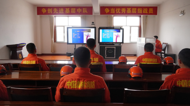 大队高度重视绳索救援培训成果转化工作,充分发挥培训人员“酵母”作用,由刚从总队培训归来的人员担当教练员,趁热打铁,梳理总结培训期间学习的专业理论知识,运用视频、图片以及现场示范的方法,帮助大家进一步直观的理解学习枯燥乏味的专业理论知识,扎实打牢消防救援人员基础理论。
