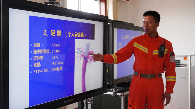 “我们在前期训练时,对装备的爱护程度不够,且许多操作流程不够规范,下面我就来给大家讲一讲咱们需要注意的地方。”训练中,四级消防士雅索安才让将自己的所学所感分享给队友,采取边讲边做的形式,充分讲解绳索救援相关器材装备的用途和穿戴注意事项,重点对绳结制作、锚点架设、微距上升、微距下降、一对一救援、倍力提拉等绳索救援方法及操作规程进行示范,进一步明确了训练的重难点内容。