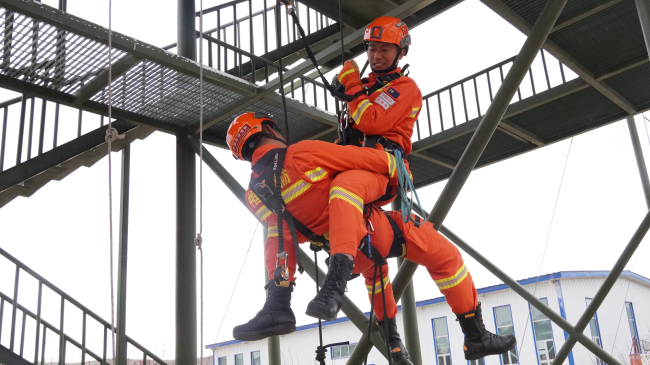 本网讯:(何秋晨)绳索救援技术是指利用绳索将伤者或被困者从危险位置转移到相对安全位置的行动。完成绳索救援需要有完善的过硬的高角度绳索通过技术。为进一步提升消防救援人员的“全灾种、大应急”救援能力,近日,阿勒泰地区森林消防支队阿勒泰大队扎实开展绳索救援训练。