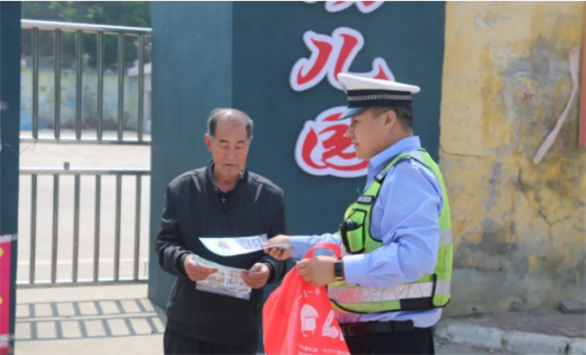 活动中,副中队长田峰伟带领民警通过发放交通安全宣传材料、面对面宣讲交通安全法律法规等形式,向群众讲解了近期辖区发生的交通事故案例及相关法律法规;结合群众出行特点,重点讲解骑乘电动自行车、电动三轮车、摩托车不佩戴安全头盔、超员超载、非法营运等违法行为的危害;教育群众要拒绝酒后驾驶、无证驾驶、疲劳驾驶等严重交通违法行为,耐心为群众答疑解惑。通过沟通交流,进一步增强了村民的参与度,拉近了民警与群众的距离,让群众的交通安全意识得到提升,真正把“安全”带回家。