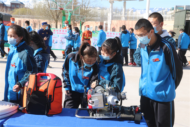 此外,在救援装备展示区和体验区活动现场,大队消防员讲解了风力灭火器、水泵、电动水枪等森林灭火救援装备的基本性能和操作使用方法,组织师生近距离操作体验各类机具装备,积极营造了防灾减灾的宣传氛围,进一步增强学校全体师生的安全意识,提高应对突发事件的自救互救能力。