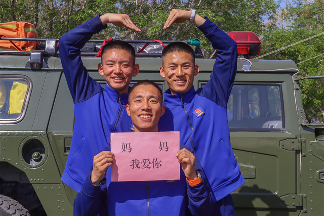 本网讯:(李涛 杨长红)世上最美的称谓是妈妈。世上最纯的爱是母爱。无论走到哪里,有妈就有家;无论待到何时,有母爱就有牵挂。每年5月的第二个星期日是母亲节日,而新疆森林消防总队新训大队的新消防员因肩上的责任不能时刻陪伴在妈妈身边,连往日最平常的相见,都变成最经常的想念,在这个充满着感恩、亲情、温馨的节日里,新蓝们用自己独特的方式表达对母亲深深的爱。