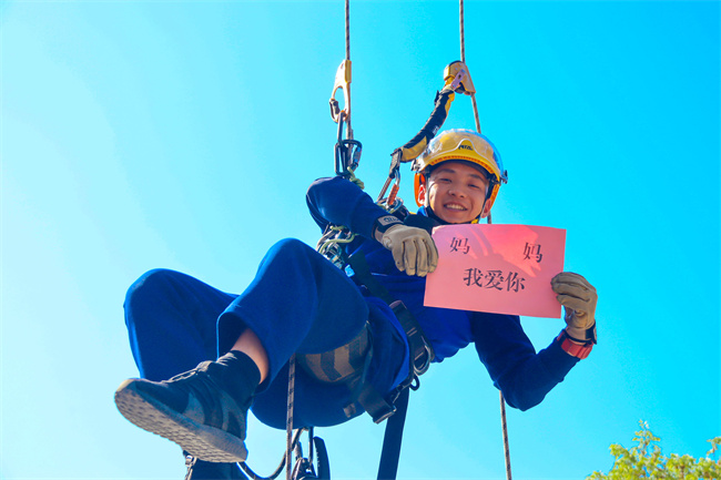 “新蓝”给母亲送祝福,“妈妈您辛苦了,母亲节快乐……”在母亲节来临之际,新训大队新消防员自己动手利用纸张制作祝福语向远方的妈妈送上诚挚的祝福。
