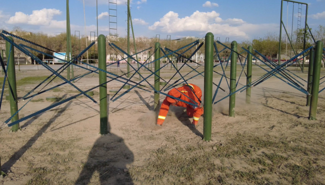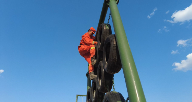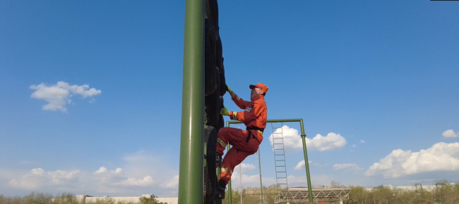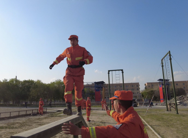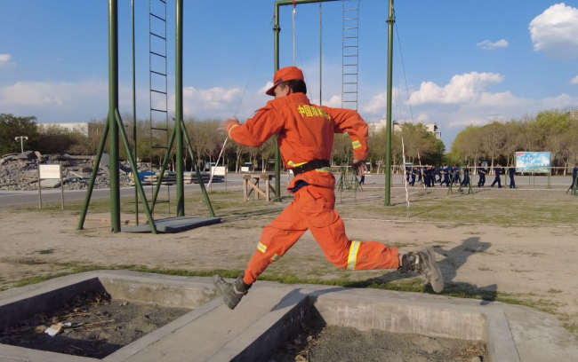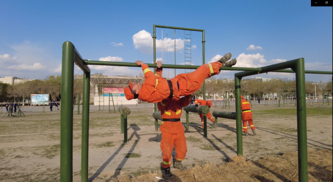 本网讯:(陈文杰)为锤炼指战员在灭火作战中过硬的心理素质和迅捷的反应能力,提高在实战中通过各种障碍物的技巧和方法。近日,新疆森林消防总队特勤大队扎实开展200米灭火障碍训练。